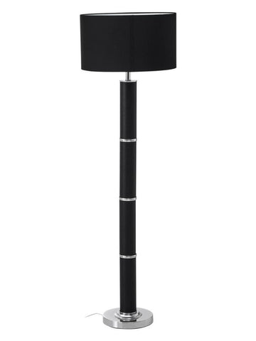Halah Black Snake Leather Effect Floor Lamp with Chrome Base and Black Shade