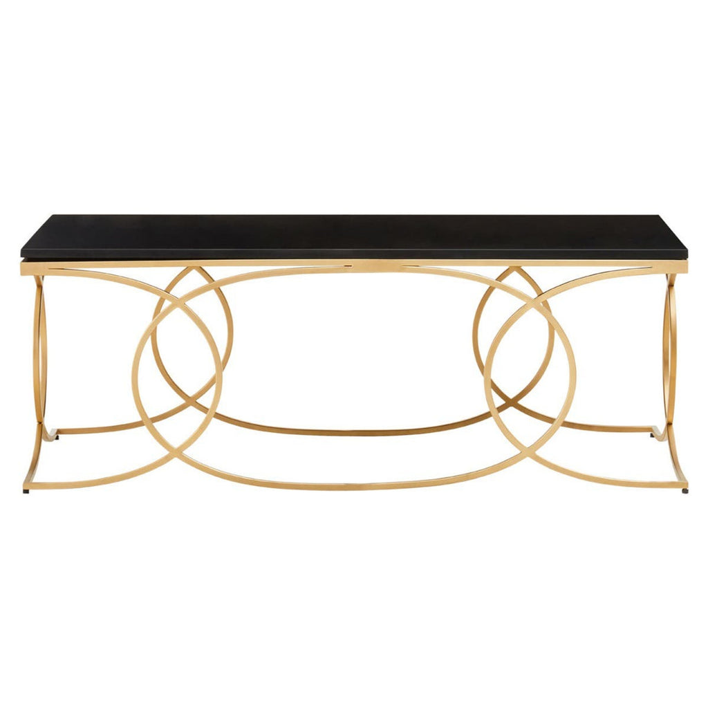 The Karl coffee table has a black marble top on a striking gold finish stainless steel frame, suitable for abodes demanding a classy aesthetic.